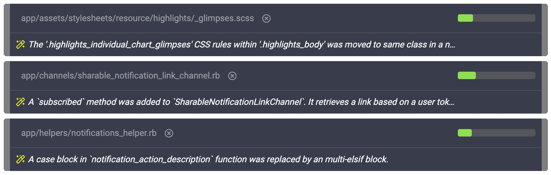 Get the gist for what changed in a file before diving into it. Skip files that don't need your attention.
