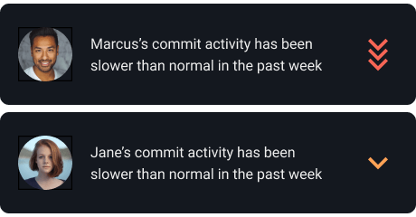 Set up notifications when developers fall below their historical norms. Identify when newly onboarded developers are falling behind the norms for ramp-up time.