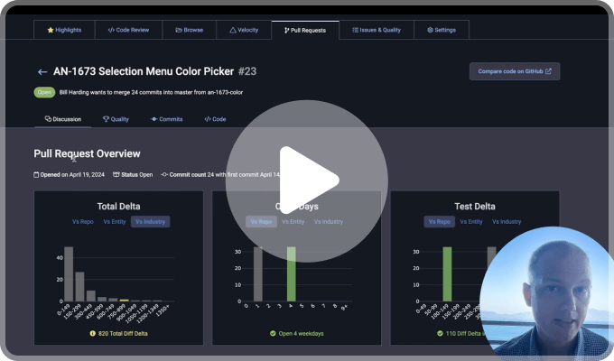 Watch a walkthrough of pull request features and see the advantages of reviewing code on GitClear.