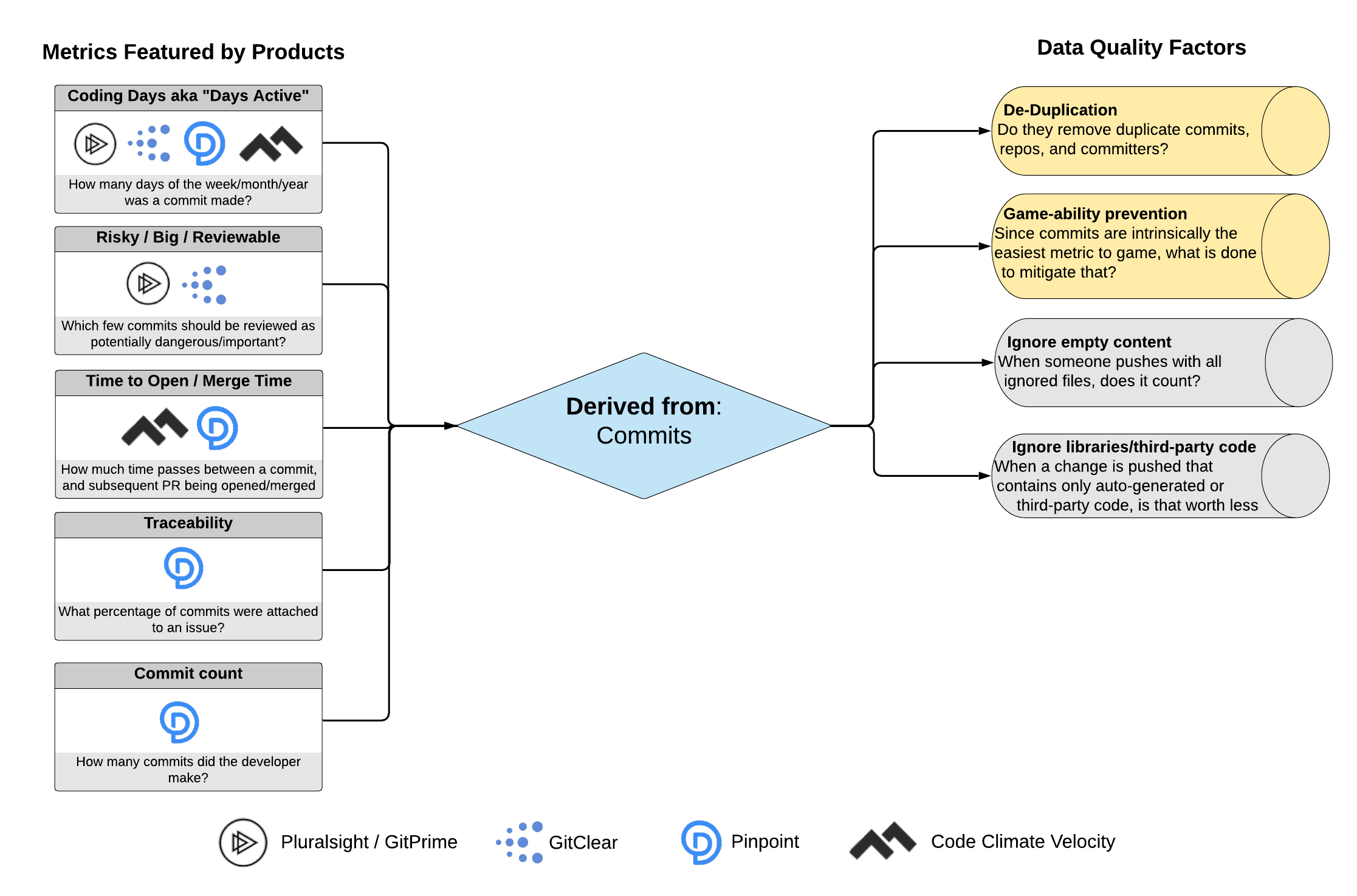 We're not going to spend too many words on this section. Commits are a dicey data source, and any metric that is informed
